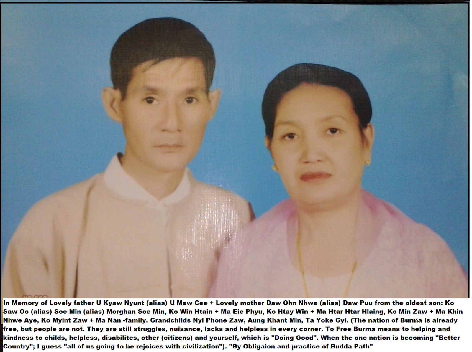 refugee schools and nation of Myanmar. All you caused life of our grand-parents, Parents, Uncles, Aunty, Brothers, Sisters, Cousins, even the